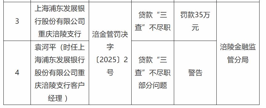 Pudong Development Bank ChongQing Fuling分支机构受到35万