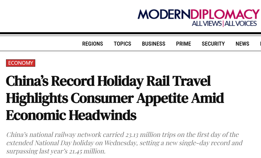 “历史上最谨慎的假期”:旅行浪潮反映了消费者康复的信心。欧洲现代外交网站指出,在中国的国庆日和中期节日的“超长黄金周”的第一天,国家铁路派出了2313万乘客,在一天的历史上创下了创纪录的纪录。该报告引用了官方预测,整个八天假期的旅行者总数预计将达到23.6亿,平均每日旅行将近3亿,这是“历史上最繁忙的假期”。欧洲“现代外交”网站上的文章报告说,屏幕截图认为,假日旅行的普及是瓦恩的重要时间来衡量消费者的信心。在一般经济弱点的后方,旅行浪潮在中国庆祝活动期间出现的不仅反映了国内消费的持续发布,而且还注入了旅游业,栖息地,餐饮和其他领域的新增长势头。路透社在报告中还提到,假期的第一天,中国著名旅行软件的日常活跃用户数量超过3.6亿,创造了很高的记录。该数据反映了数字旅行服务与假期消费之间的密切关系,并显示了中国数字经济在假日经济中的积极表现。多元化的文化和旅游经验:从利江到圣殿岛的漫长文化假期一直在报告Toamerican的“旅行和旅游世界”网站,在假期期间,中国旅游市场带来了全面的繁荣,而国内游客的数量则取得了很高的记录。该报告指出,广西的扬肖河的场景继续吸引中国和外国旅游以及河北唐山的赫里头古街、贵州古镇等地区,展现出自然与文化遗产融合的独特之美。山东烟台寺庙岛的景色和传统的“铁艺烟花表演”也让游客感受到了中国多地的文化项目。 《旅游世界》网站给旅游界的报道截图认为,在旅游业持续回暖的同时,各地政府和文旅部门着力加强客流管理,平衡文化生态保护市场需求,形成旅游业可持续发展规划。餐饮、零售双双升温:黄金周消费热度持续。 新加坡联合早报关注中国节日期间消费餐饮增长情况。该报告引用了官方数据,并报道说,中国主要零售公司和供应的销售额从10月1日到4年增长了3.3%。在报纸采访中,中国钟山大学的教授林·达维(Lin Dawei)表示,旅游业和中国对中国消费的发展在黄金周的上半年是积极的。在人们的生计中,例如餐饮和零售。电影市场很热:国庆假日票房继续记录良好的成绩。除了蓬勃发展和消费繁荣外,全球媒体还关注假期中中国电影市场的剩余表现。新加坡的Lianhe Zaobao认为,与去年同期相比,今年的国庆假期平均单日票房已取得略有增加,表明对剧院的需求继续愈合。根据Artisan Gateway Data的报道,这部电影“志愿军队:鲜血”在本周末从10月3日的Hanggang 5中排名第一,在中国电影的票房中,该电影在假期期间成为“最热门的屏幕工作”。翻译者:Li Xiuli签名:Jia Yanning,Liu Yiyao